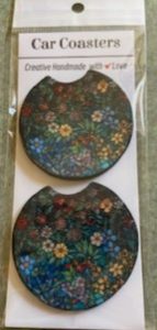 These Car Coasters are made from neoprene dive material. They are 2 3/4 in diameter and are anti-skid. Not only can these coasters be used in cars, they also can be used in any room in your house for resting coffee cups, wine cups, and beverage cans.